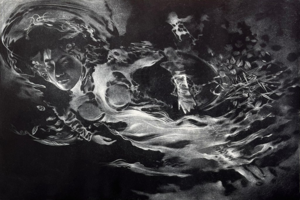 série « aqua nigra« , 2022 – manières noires et pointes sèches :